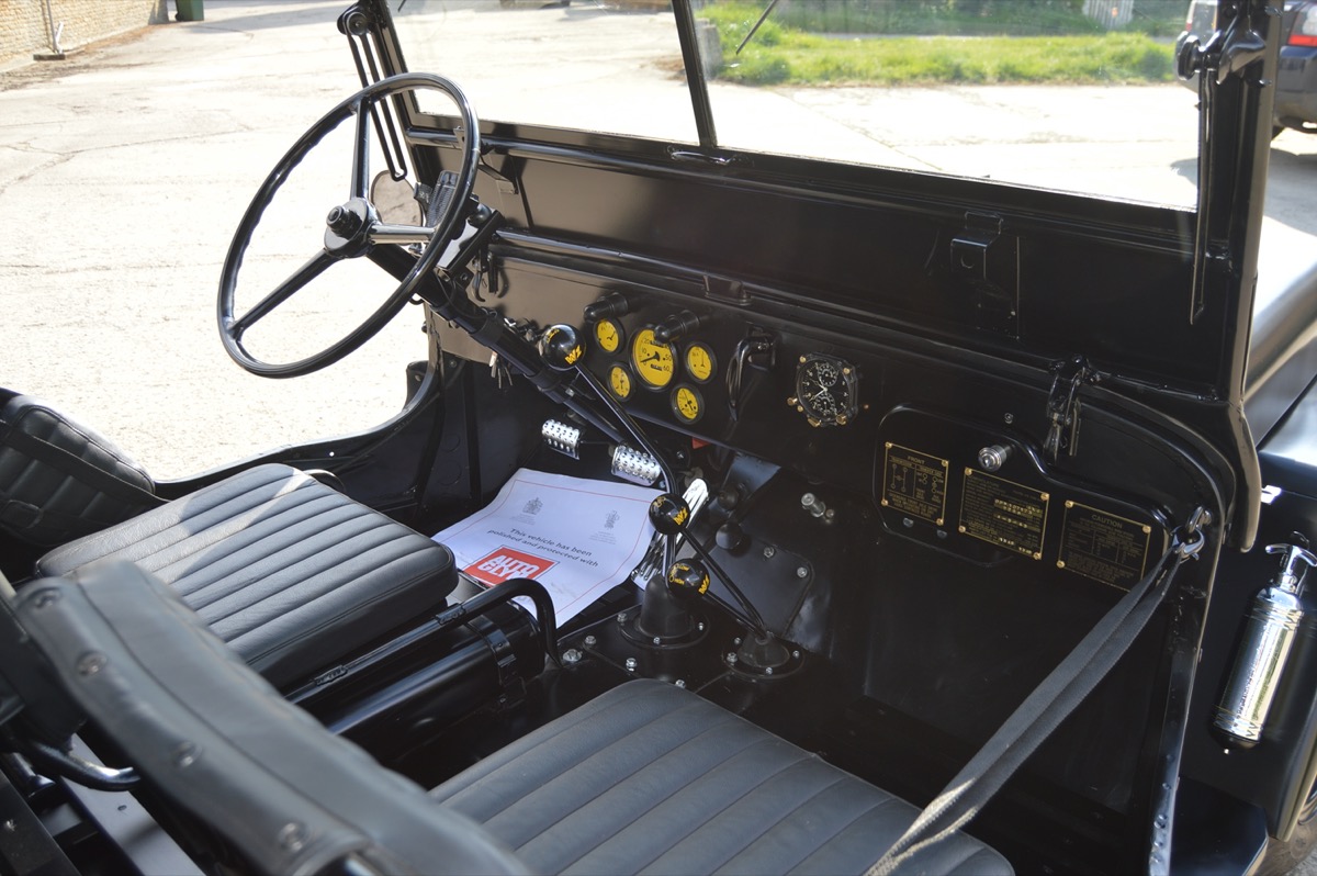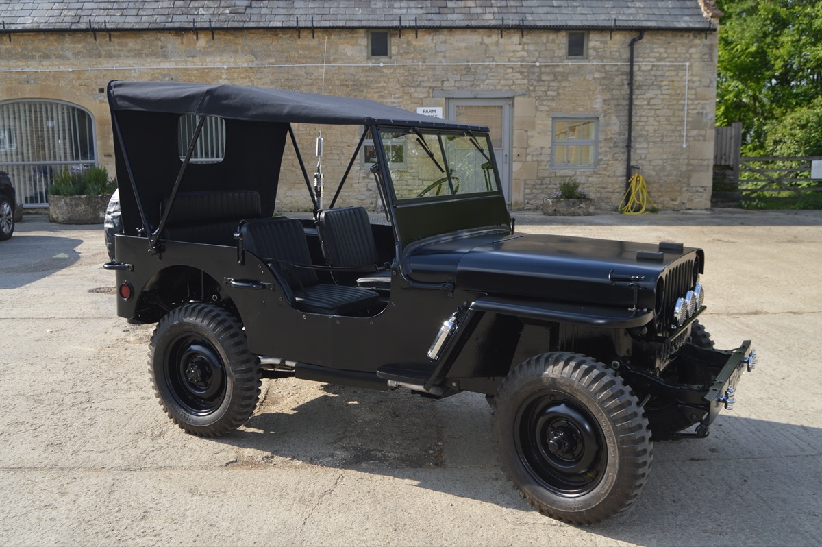 Customised from drab green to Black and Chrome, the interior was retrimmed in black leather and the hood completely remade by hand. The dials were customised in to “Brietling” yellow and a “Wagmann/Brietling clock from a 1960’s American jet fighter added.